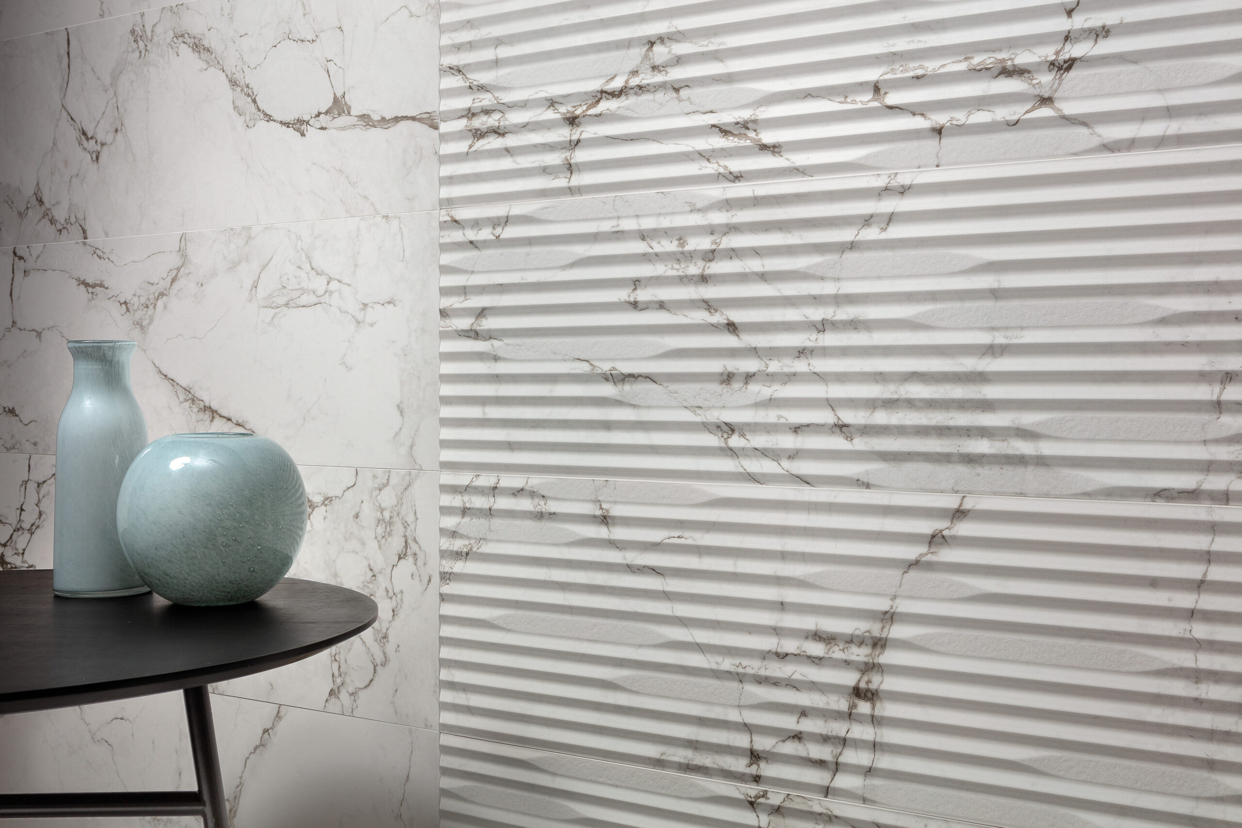 Our decorative installations blur the line between art and stone, featuring a dramatic six-metre stretch of book-matched marble, a basalt and copper water-jet cut tree installation, and a monumental mosaic wall depicting the Terracotta Warriors. Showcasing the exceptional possibilities available through our partnerships with the world’s leading manufactures and designers.