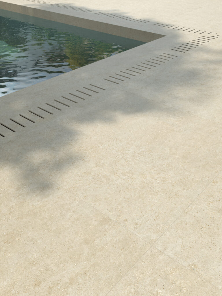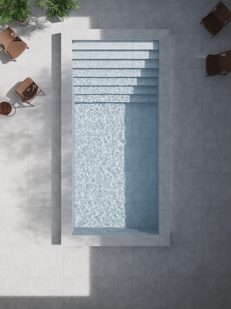 Our porcelain pool collection offers exceptional design versatility, featuring both off-the-shelf options and bespoke designs – using any piece from our porcelain collection. The collection includes thoughtfully crafted elements such as grates, copings, and feature walls, combining style and anti-slip technology, suitable for any project.