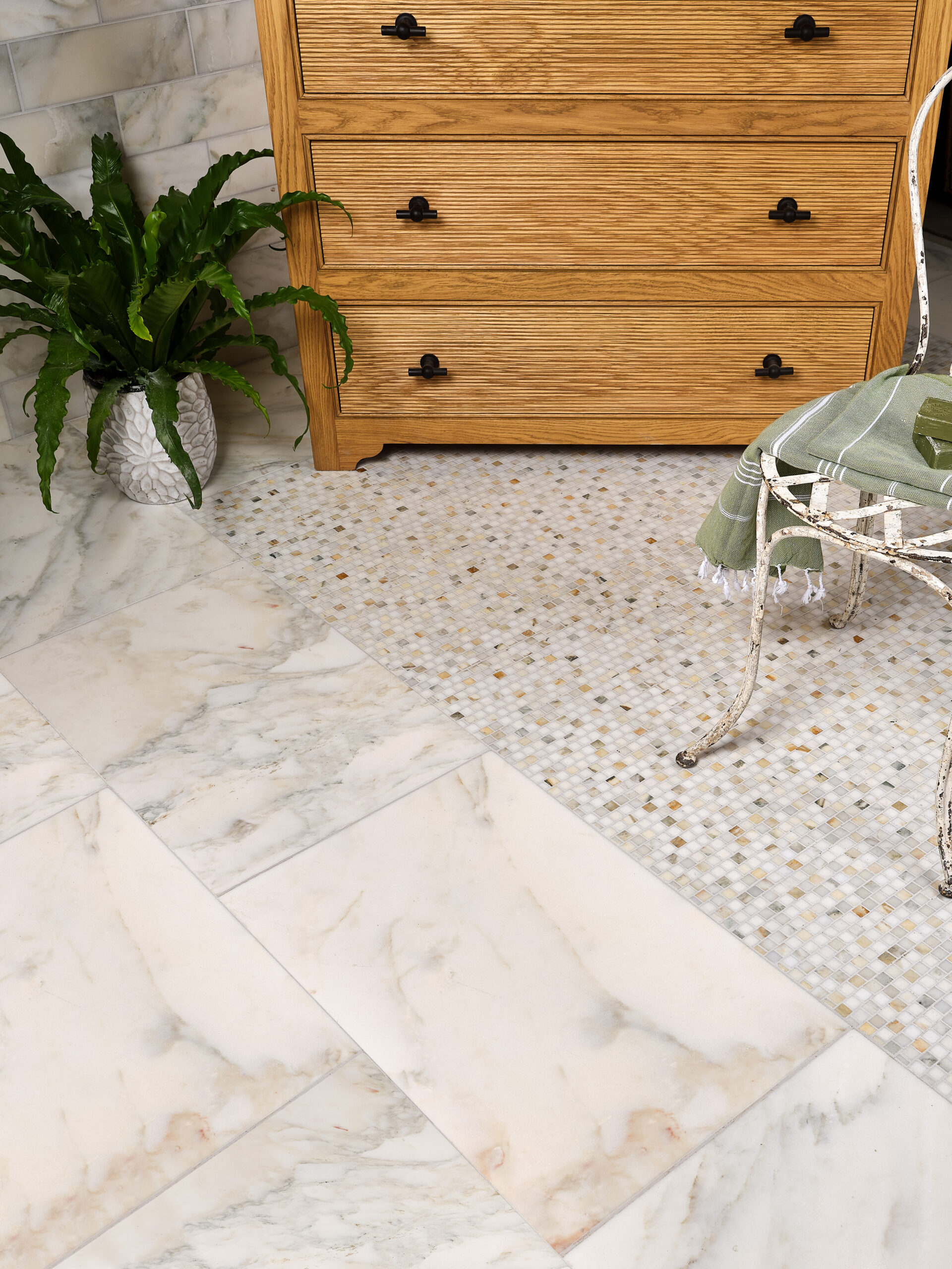 Calacatta Oceana Oro, with its muted honed finish, brings subtle sophistication to any space.