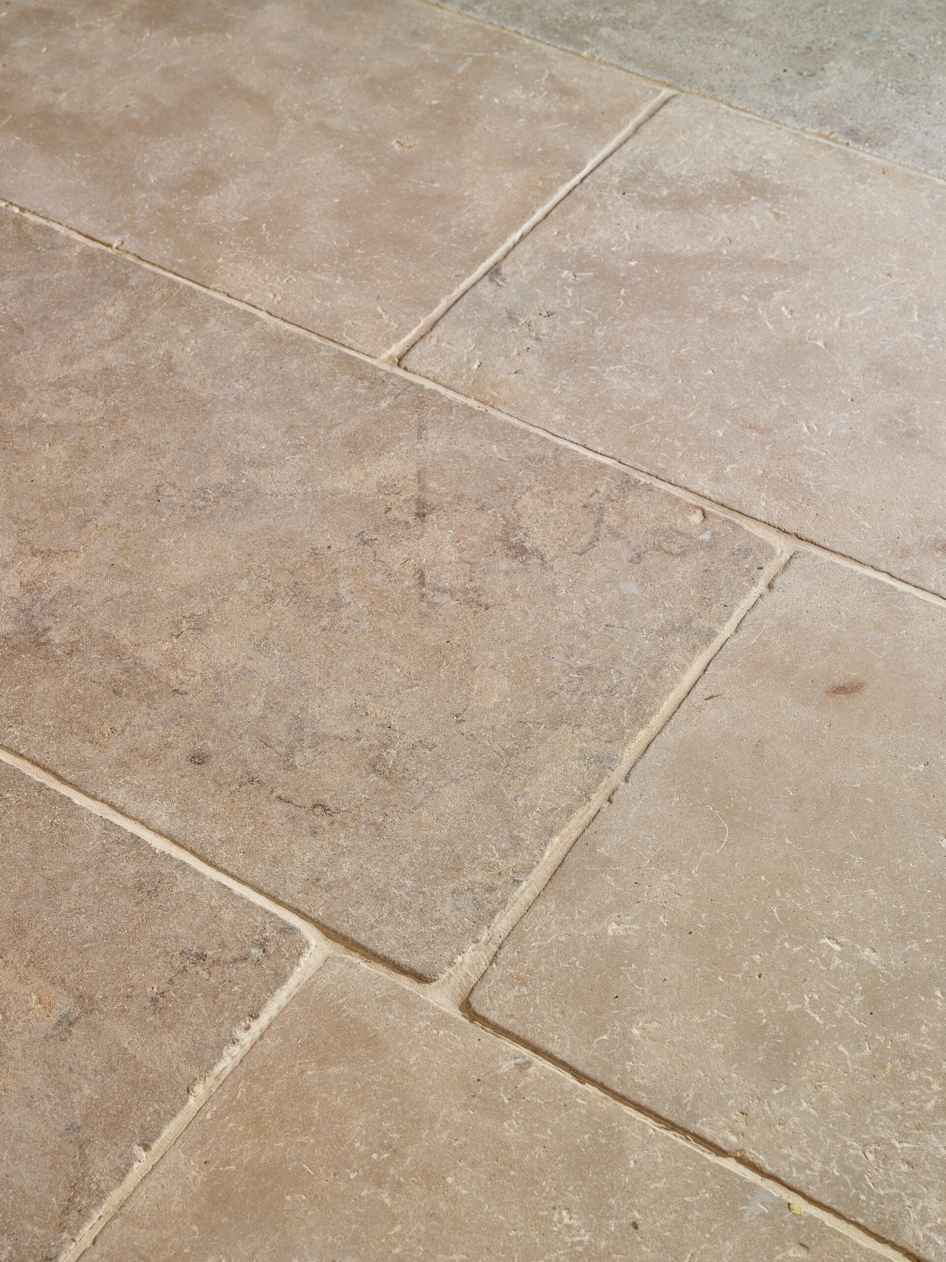 This limestone showcases a charming mix of soft greys and warm beiges, subtle fossil markings and delicate veining. Supplied in a classic small flagstone size, its tumbled finish lends a weathered, timeworn appearance that adds instant warmth and character to any interior.