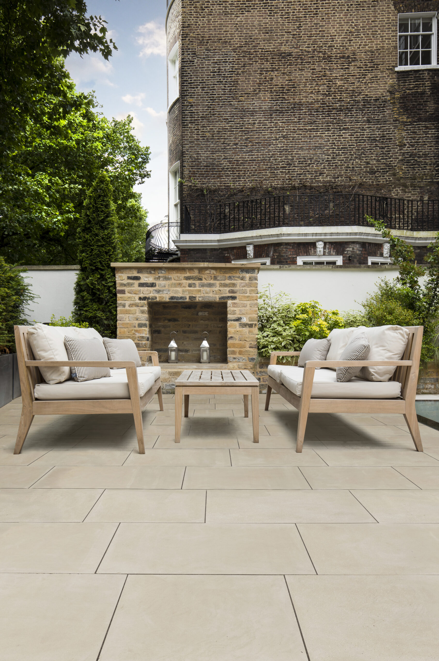 With an exceptionally fine grain, this smooth and uniform ivory-greige sandstone from Europe provides outstanding durability against weather conditions.