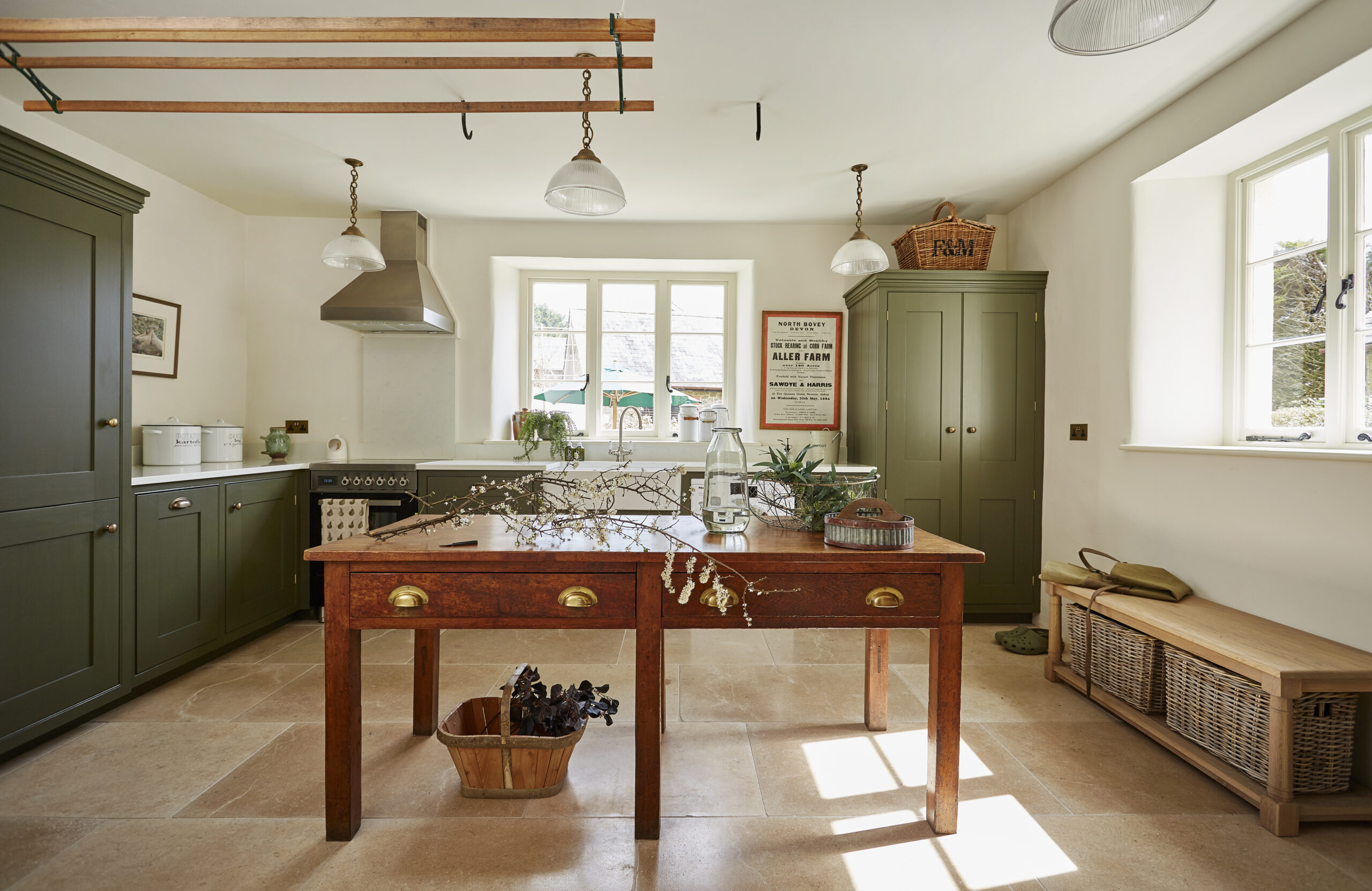 Working closely with bespoke kitchen company Barnes of Ashburton, Devon Stone supplied and installed a beautiful tumbled Calcot limestone floor to compliment the bespoke joinery created by Barnes of Ashburton at this 16th century Dartmoor farmhouse.